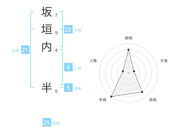 坂垣内 半さんの外格は21画の5点!