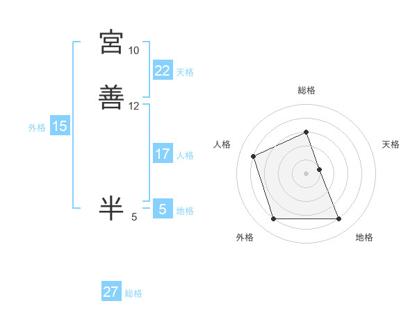 家系が持つ宿命的な運勢を表します。祖先から受け継いだ苗字ですので自分の力が及びません。家柄を象徴します。