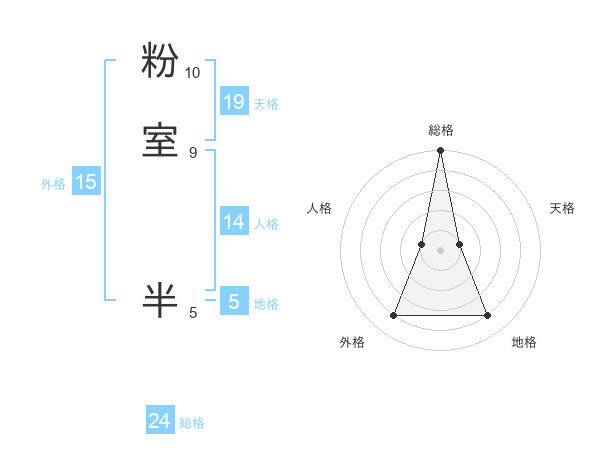 粉室 半さんの総格は24画の5点!