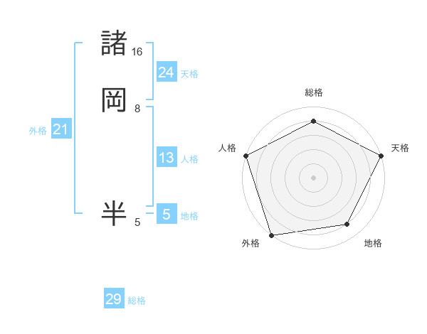 諸岡 半さんの総格は29画の4点!
