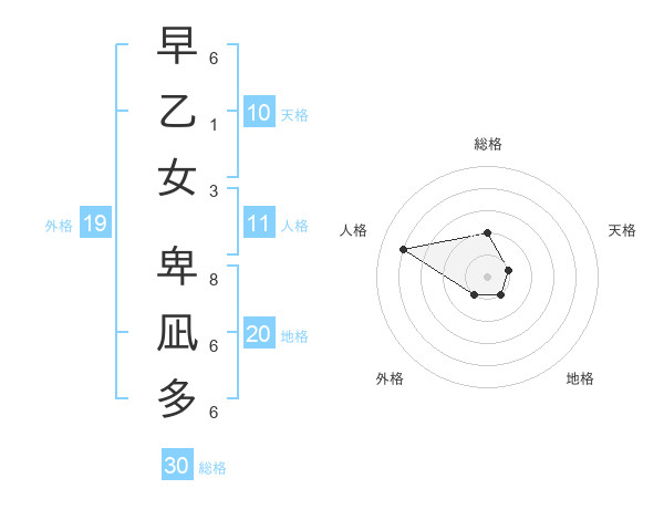早乙女 卑凪多さんを姓名の画数から五運を鑑定