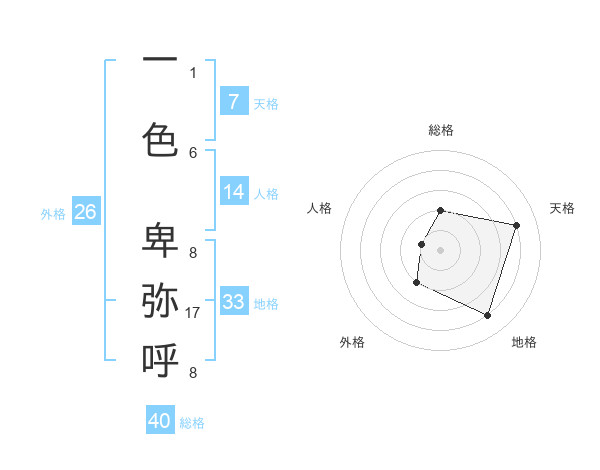 一色 卑弥呼さんを姓名の画数から五運を鑑定
