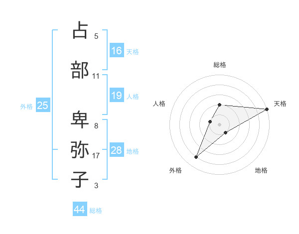 占部 卑弥子さんを姓名の画数から五運を鑑定