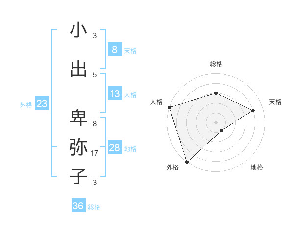 小出 卑弥子さんを姓名の画数から五運を鑑定