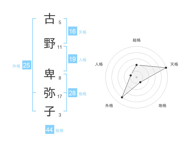 古野 卑弥子さんを姓名の画数から五運を鑑定