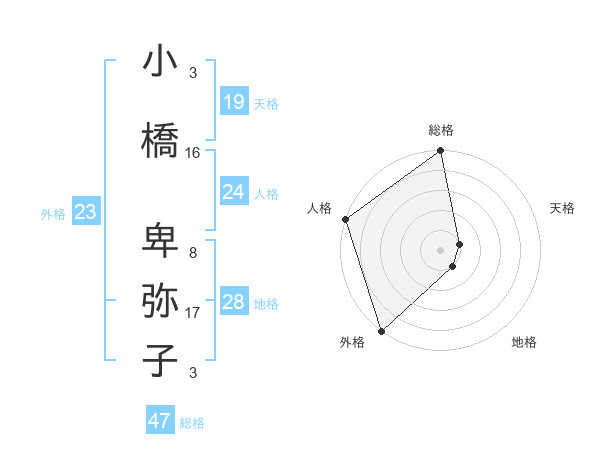 小橋 卑弥子さんの外格は23画の5点!