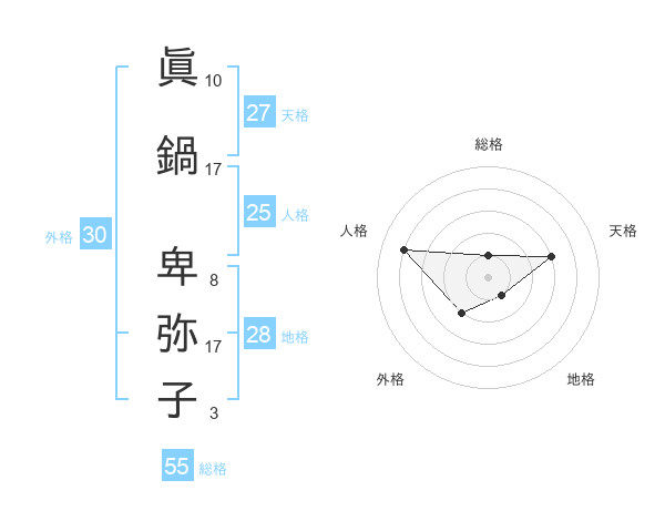 眞鍋 卑弥子さんの総格は55画の1点!