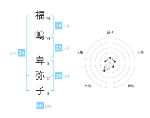 福嶋 卑弥子さんを姓名の画数から五運を鑑定