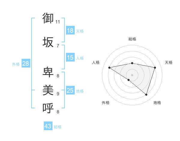 御坂 卑美呼さんを姓名の画数から五運を鑑定