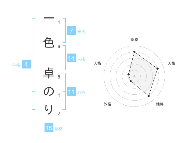 一色 卓のりさんを姓名の画数から五運を鑑定