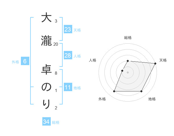 大瀧 卓のりさんを姓名の画数から五運を鑑定