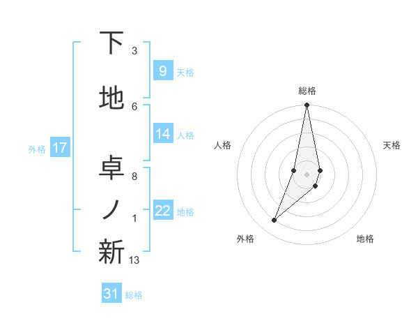 下地 卓ノ新さんを姓名の画数から五運を鑑定