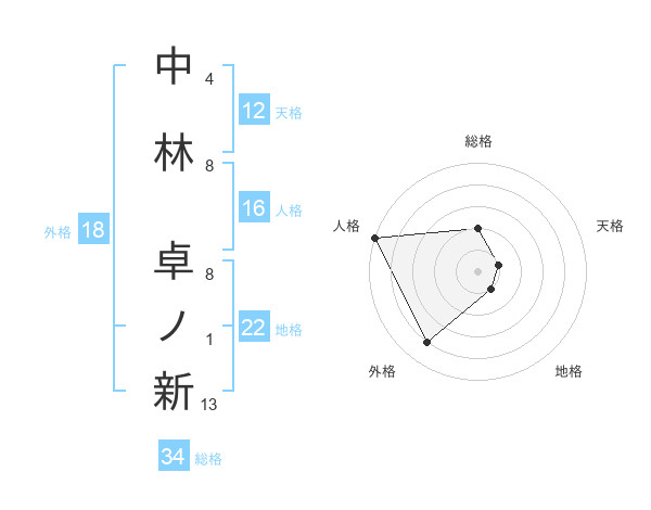 中林 卓ノ新さんを姓名の画数から五運を鑑定