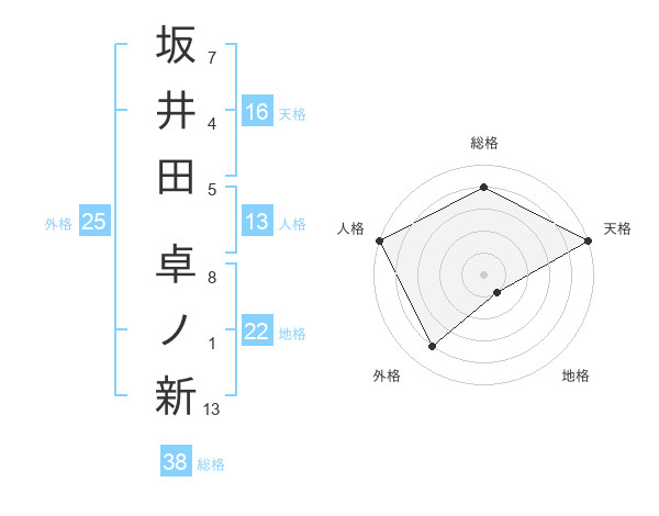 坂井田 卓ノ新さんを姓名の画数から五運を鑑定