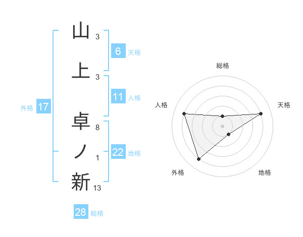 山上 卓ノ新さんの天格は6画の4点!