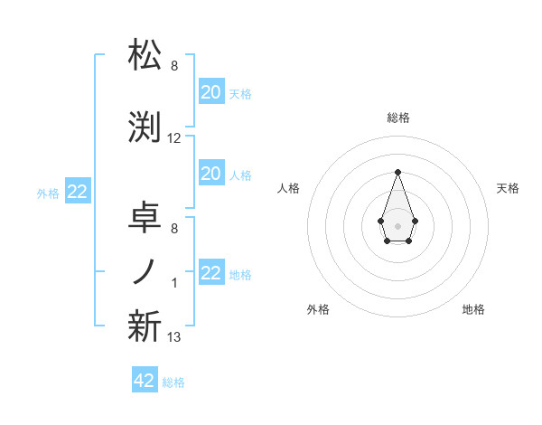 松渕 卓ノ新さんを姓名の画数から五運を鑑定