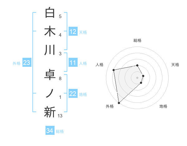 白木川 卓ノ新さんを姓名の画数から五運を鑑定