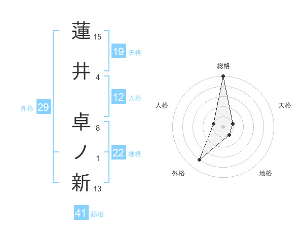 蓮井 卓ノ新さんを姓名の画数から五運を鑑定