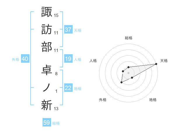 諏訪部 卓ノ新さんの天格は37画の5点!