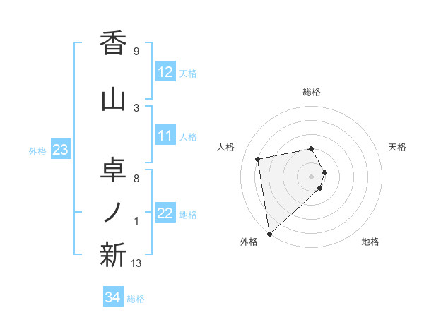 香山 卓ノ新さんを姓名の画数から五運を鑑定