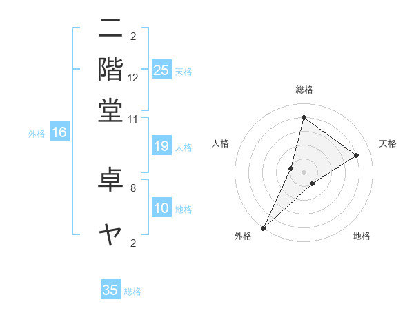 二階堂 卓ヤさんを姓名の画数から五運を鑑定