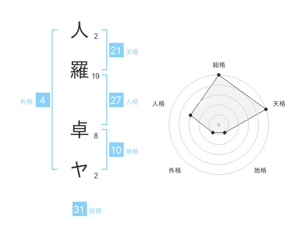 人羅 卓ヤさんを姓名の画数から五運を鑑定