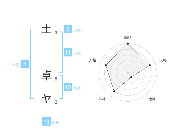 土 卓ヤさんの総格は13画の5点!