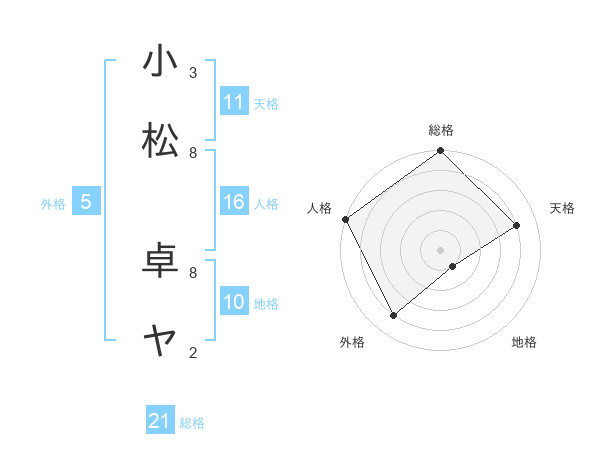 小松 卓ヤさんを姓名の画数から五運を鑑定