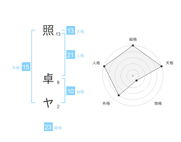 照 卓ヤさんの天格は13画の5点!