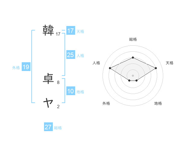 韓 卓ヤさんの天格は17画の4点!