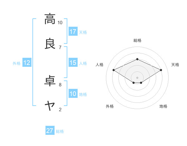 高良 卓ヤさんを姓名の画数から五運を鑑定