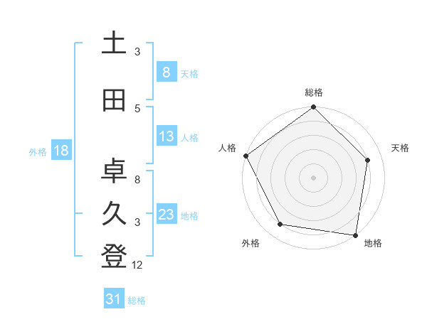土田 卓久登さんの総格は31画の5点