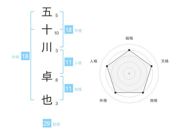 五十川 卓也さんの総格は29画の4点!