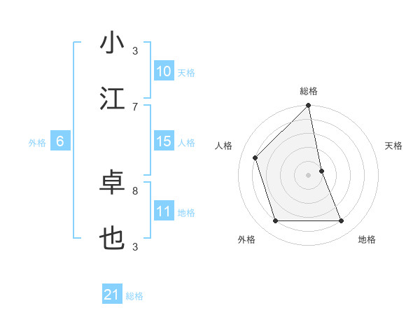小江 卓也さんの総格は21画の5点!
