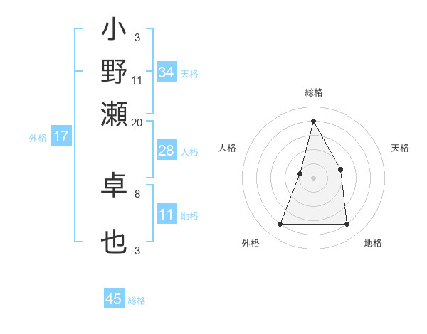 小野瀬 卓也さんを姓名の画数から五運を鑑定
