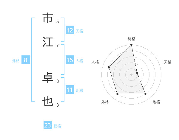 市江 卓也さんの総格は23画の5点!