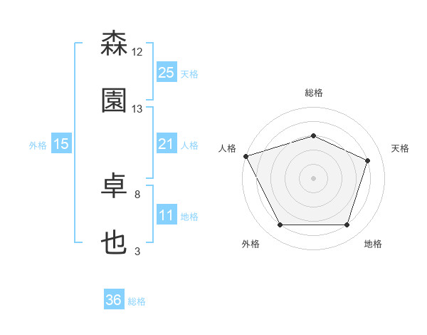 森園 卓也さんの人格は21画の5点!