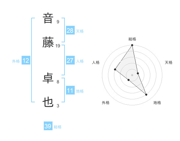 音藤 卓也さんの総格は39画の5点!