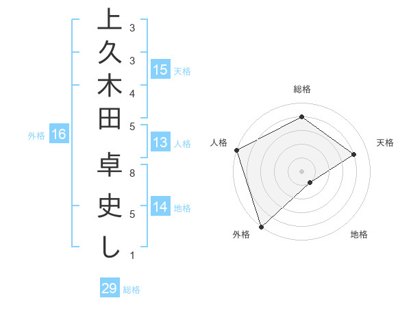 上久木田 卓史しさんを姓名の画数から五運を鑑定