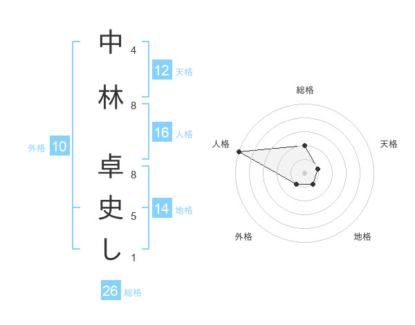 中林 卓史しさんを姓名の画数から五運を鑑定