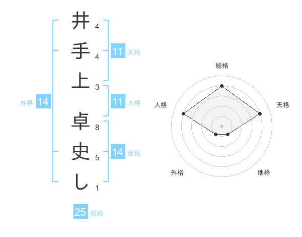 井手上 卓史しさんの天格は11画の4点!