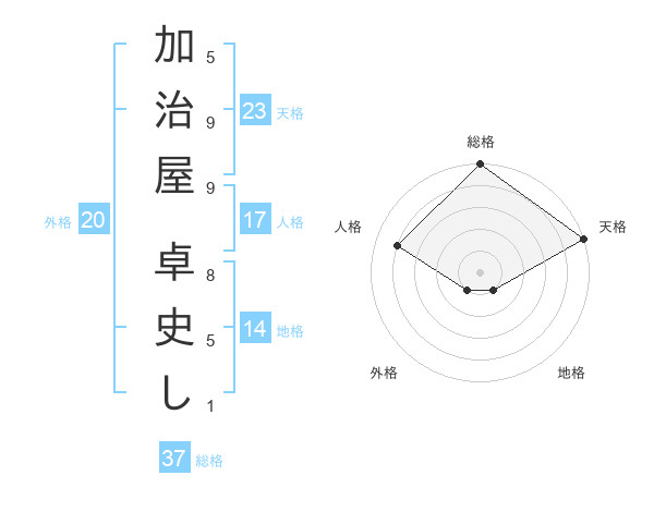 加治屋 卓史しさんを姓名の画数から五運を鑑定