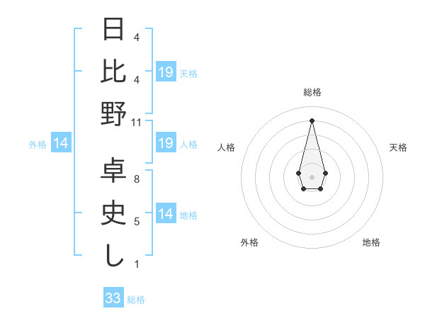 日比野 卓史しさんの総格は33画の4点!