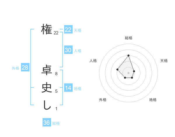 権 卓史しさんの天格は22画の1点!