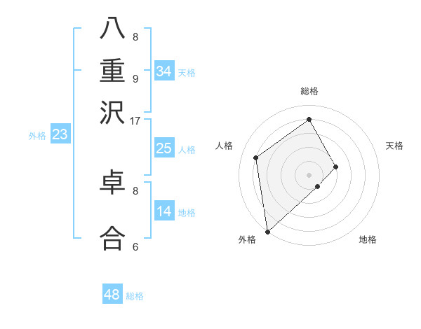 八重沢 卓合さんを姓名の画数から五運を鑑定