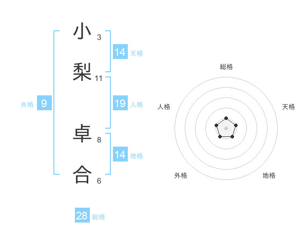 小梨 卓合さんの総格は28画の1点!