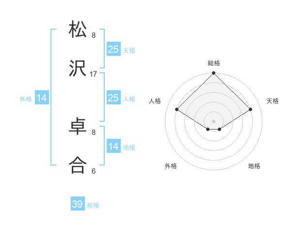 松沢 卓合さんを姓名の画数から五運を鑑定