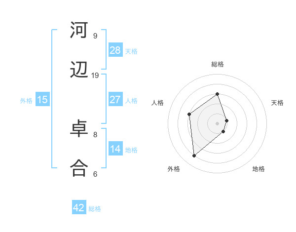 河辺 卓合さんの総格は42画の3点!