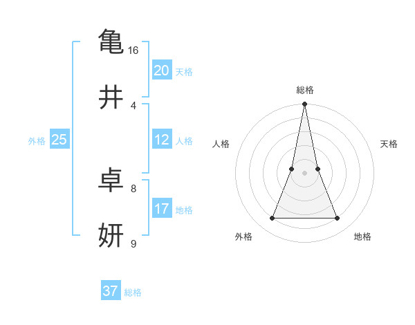 亀井 卓妍さんの総格は37画の5点!