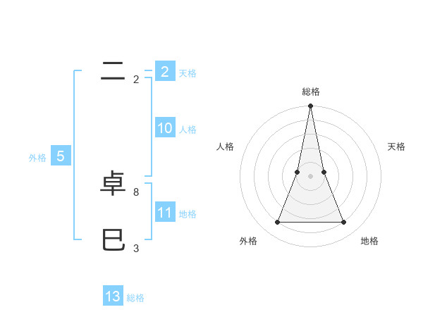二 卓巳さんの総格は13画の5点!